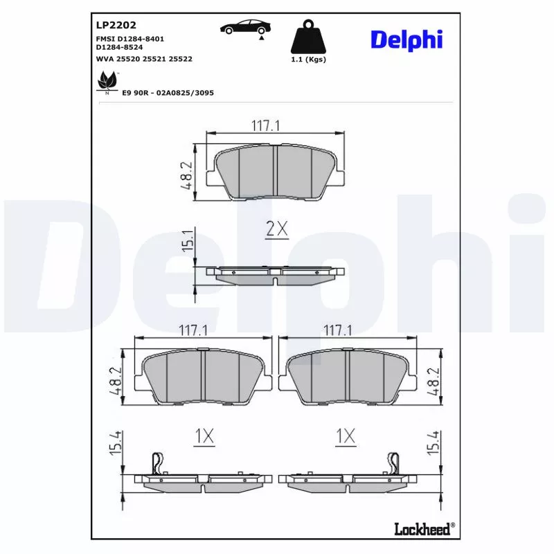 Jeu de 4 plaquettes de frein arrière DELPHI - LP2202