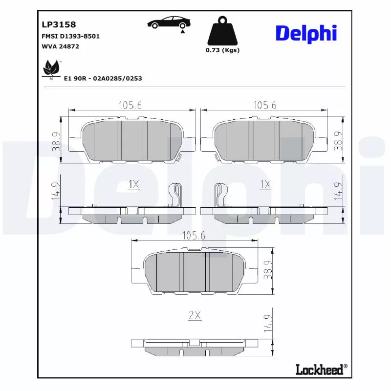 Jeu de 4 plaquettes de frein arrière DELPHI - LP3158