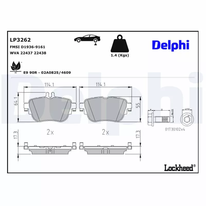 Jeu de 4 plaquettes de frein arrière DELPHI - LP3262