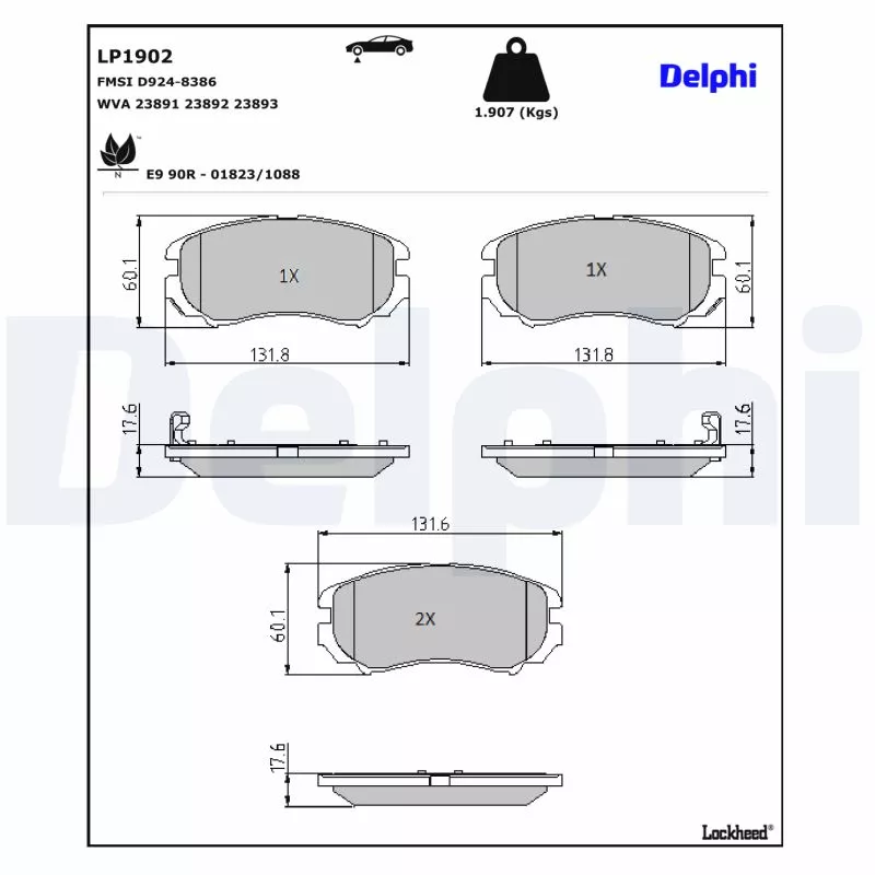Jeu de 4 plaquettes de frein avant DELPHI - LP1902