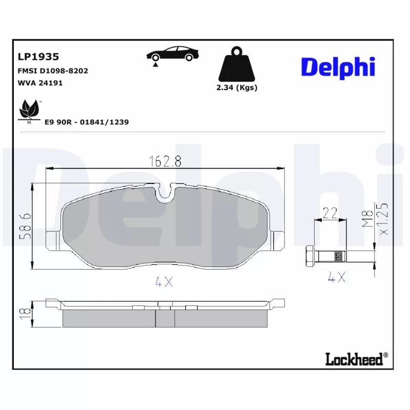 Jeu de 4 plaquettes de frein avant DELPHI - LP1935