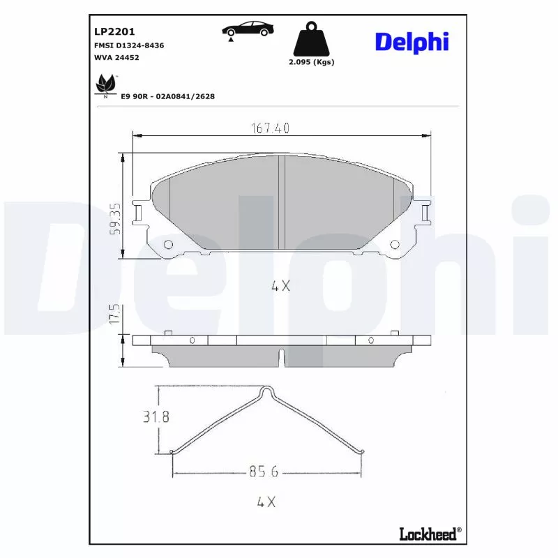 Jeu de 4 plaquettes de frein avant DELPHI - LP2201