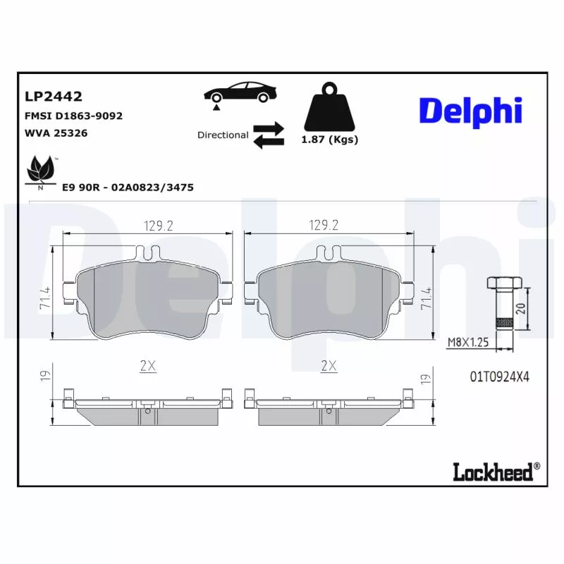 Jeu de 4 plaquettes de frein avant DELPHI - LP2442