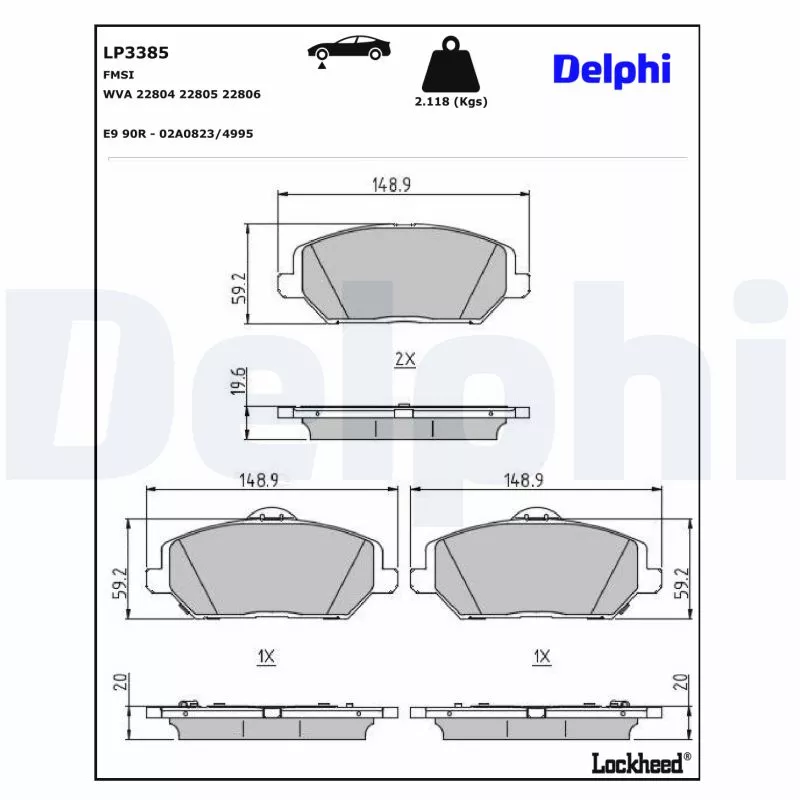 Jeu de 4 plaquettes de frein avant DELPHI - LP3385