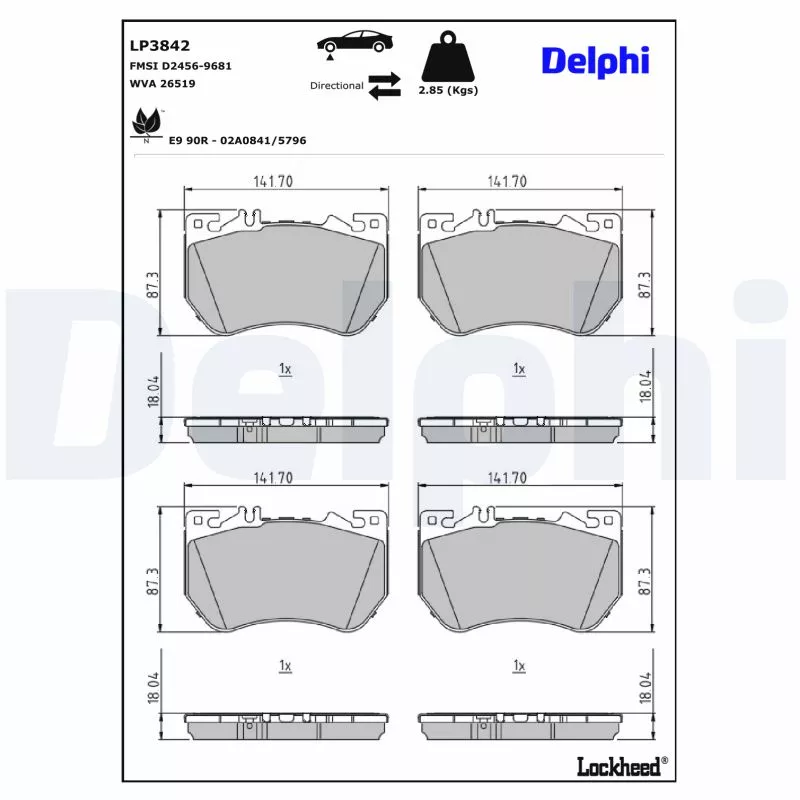 Jeu de 4 plaquettes de frein avant DELPHI - LP3842