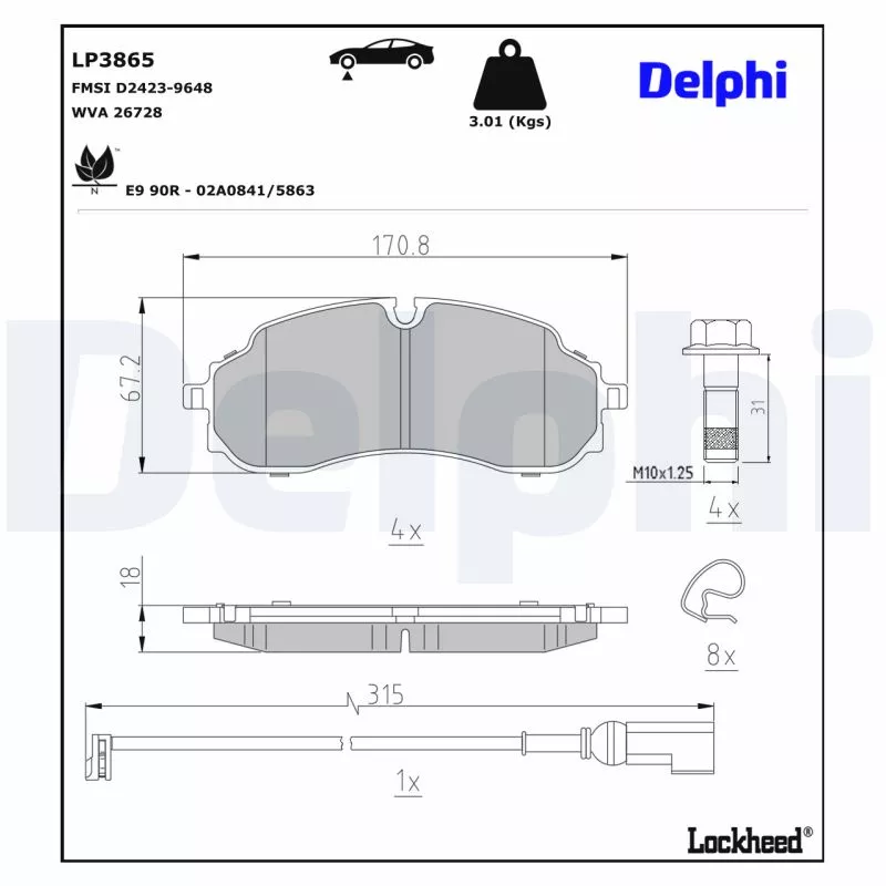 Jeu de 4 plaquettes de frein avant DELPHI - LP3865
