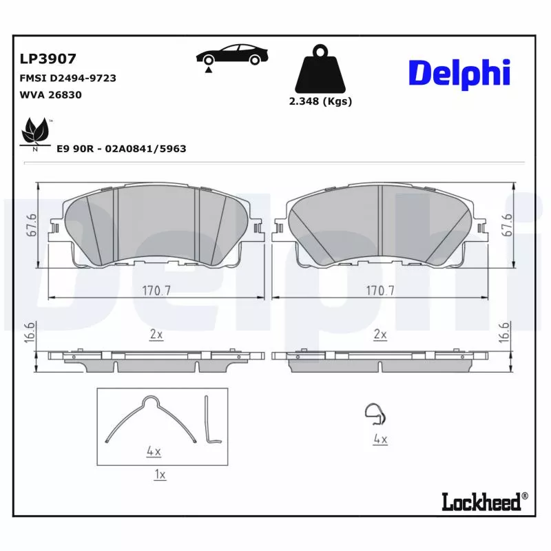 Jeu de 4 plaquettes de frein avant DELPHI - LP3907