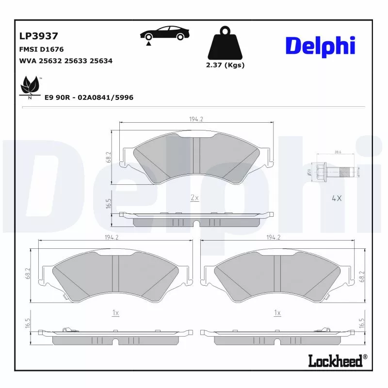 Jeu de 4 plaquettes de frein avant DELPHI - LP3937