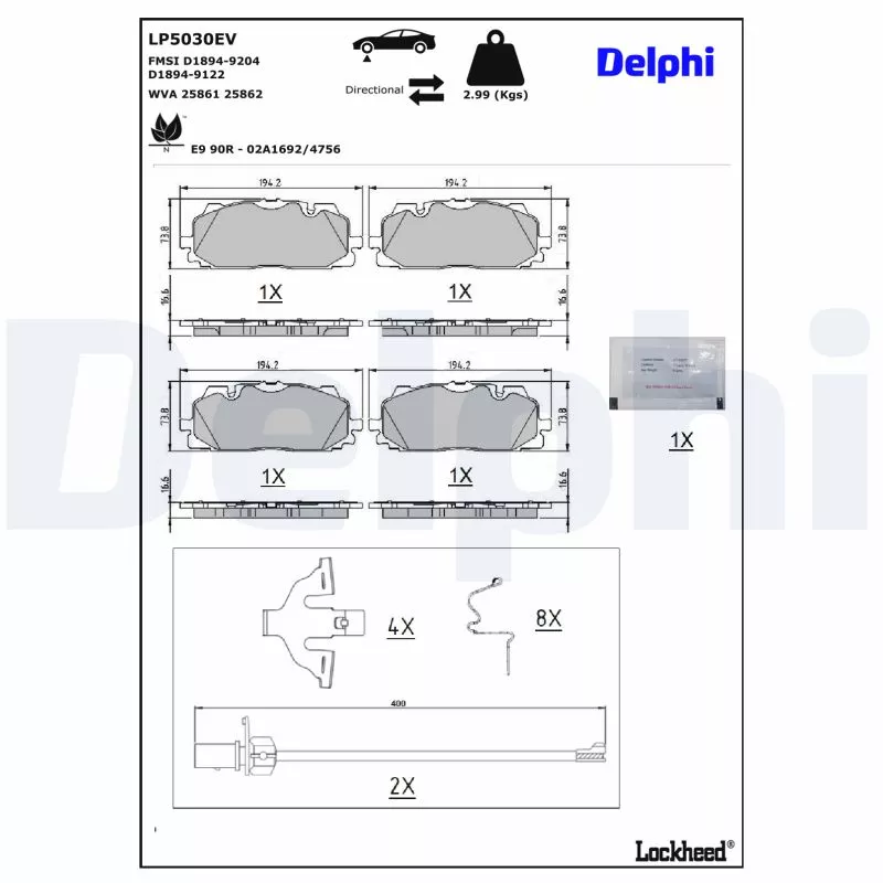 Jeu de 4 plaquettes de frein avant DELPHI - LP5030EV