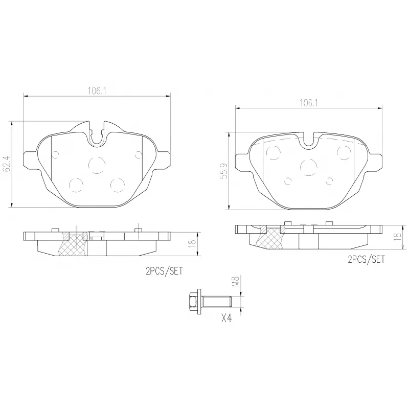 Jeu de 4 plaquettes de frein avant BREMBO - P06064NX