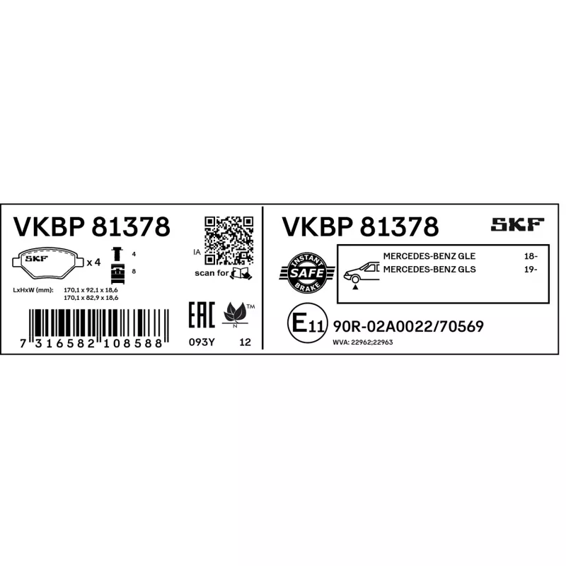 Jeu de 4 plaquettes de frein avant SKF - VKBP 81378