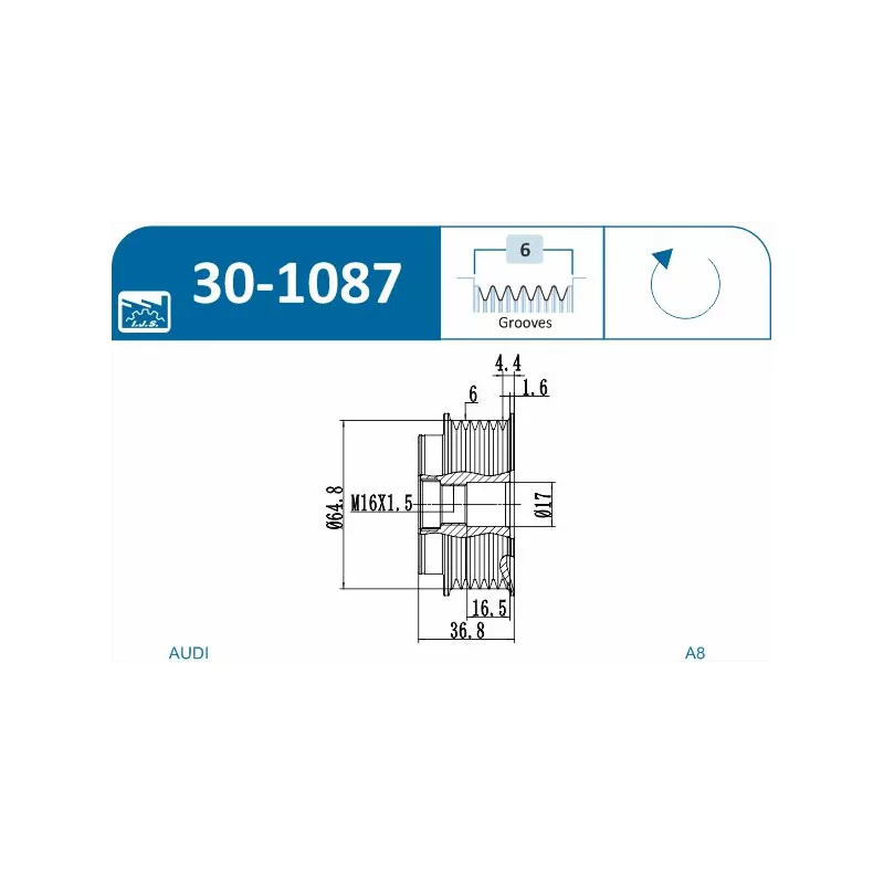 Poulie roue libre, alternateur IJS GROUP - 30-1087