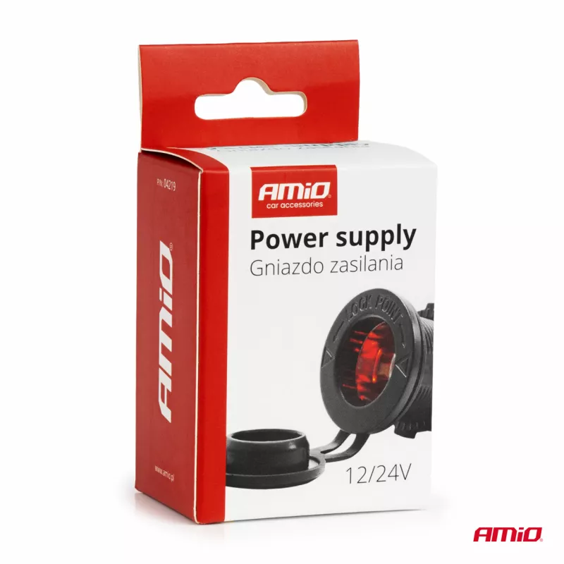 Prise d'alimentation supplémentaire encastrable avec éclairage rouge 12V 24V - AMIO - 04219