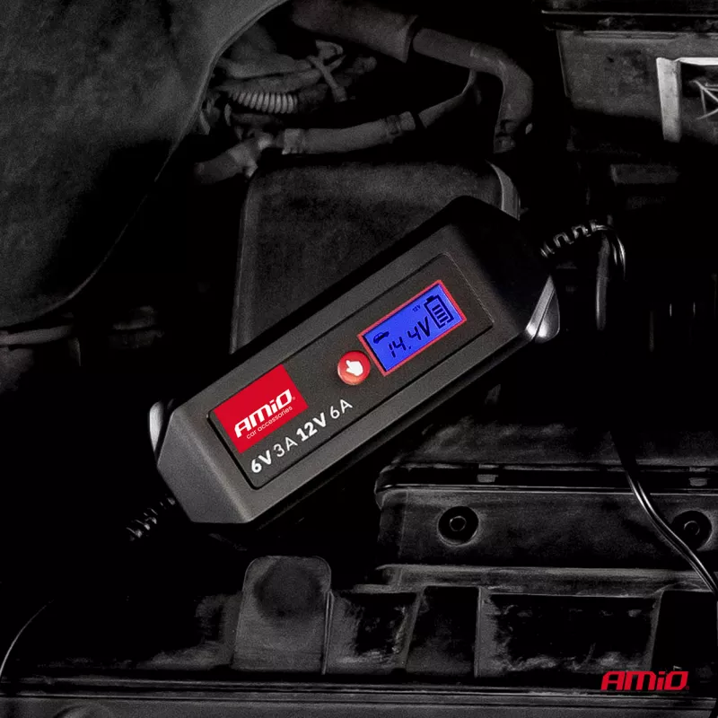Le chargeur numérique AMiO est conçu pour charger efficacement les batteries au plomb-acide WET, AGM et GEL en 6V ou 12V, avec un courant maximal de 6A
