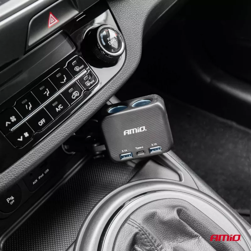 Répartiteur de prise allume-cigare avec chargeur 2x USB-A 1x USB-C 12V 24V 100W 180° AMIO - 04357