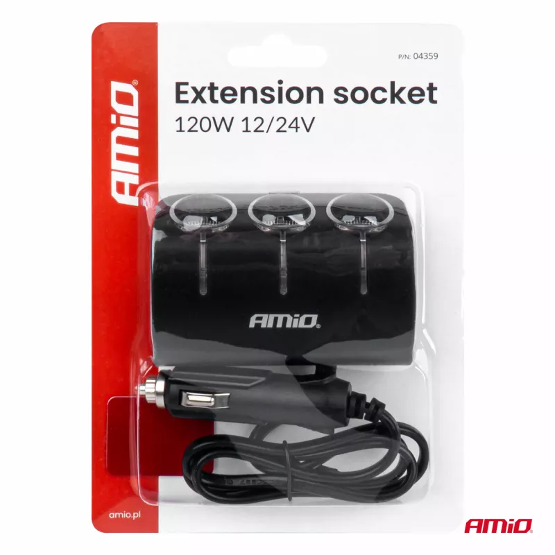 Répartiteur prise allume-cigare 12V 24V 120W 80cm - AMIO - 04359