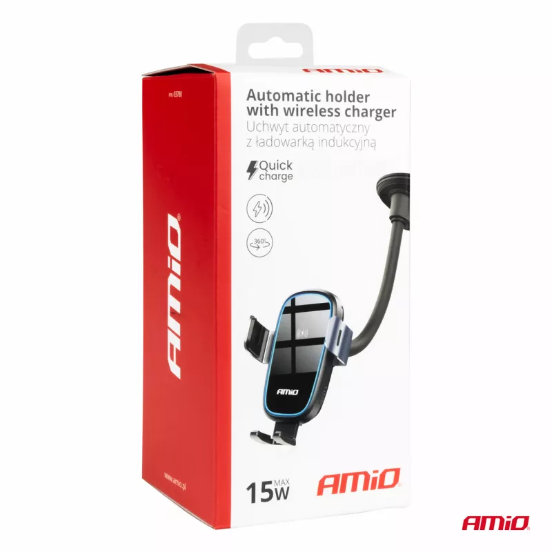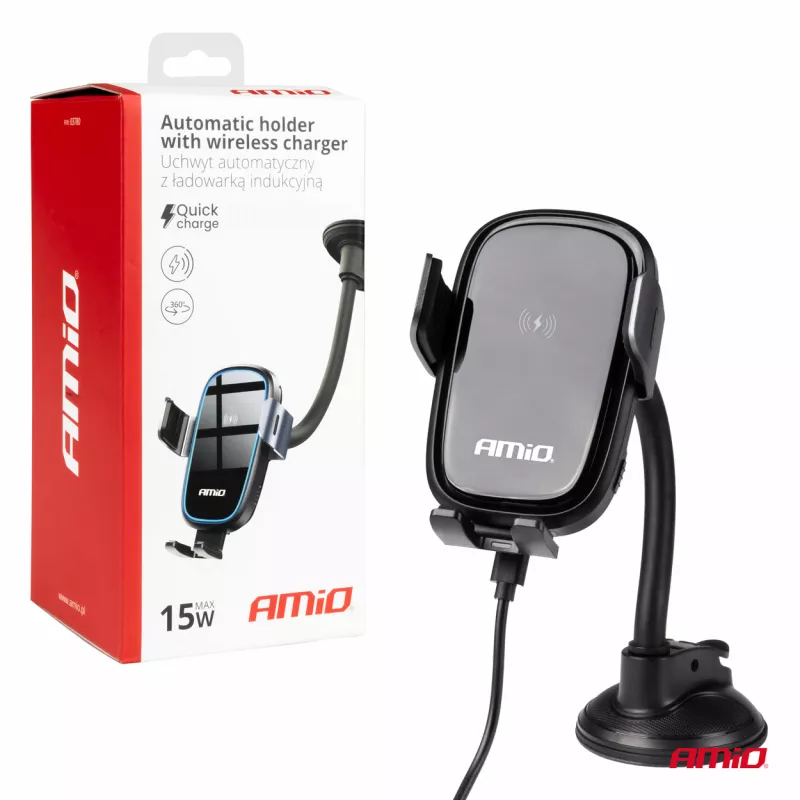 Support de voiture pour téléphone, pare-brise, tableau de bord, chargeur à induction 15W AMIO - 03780